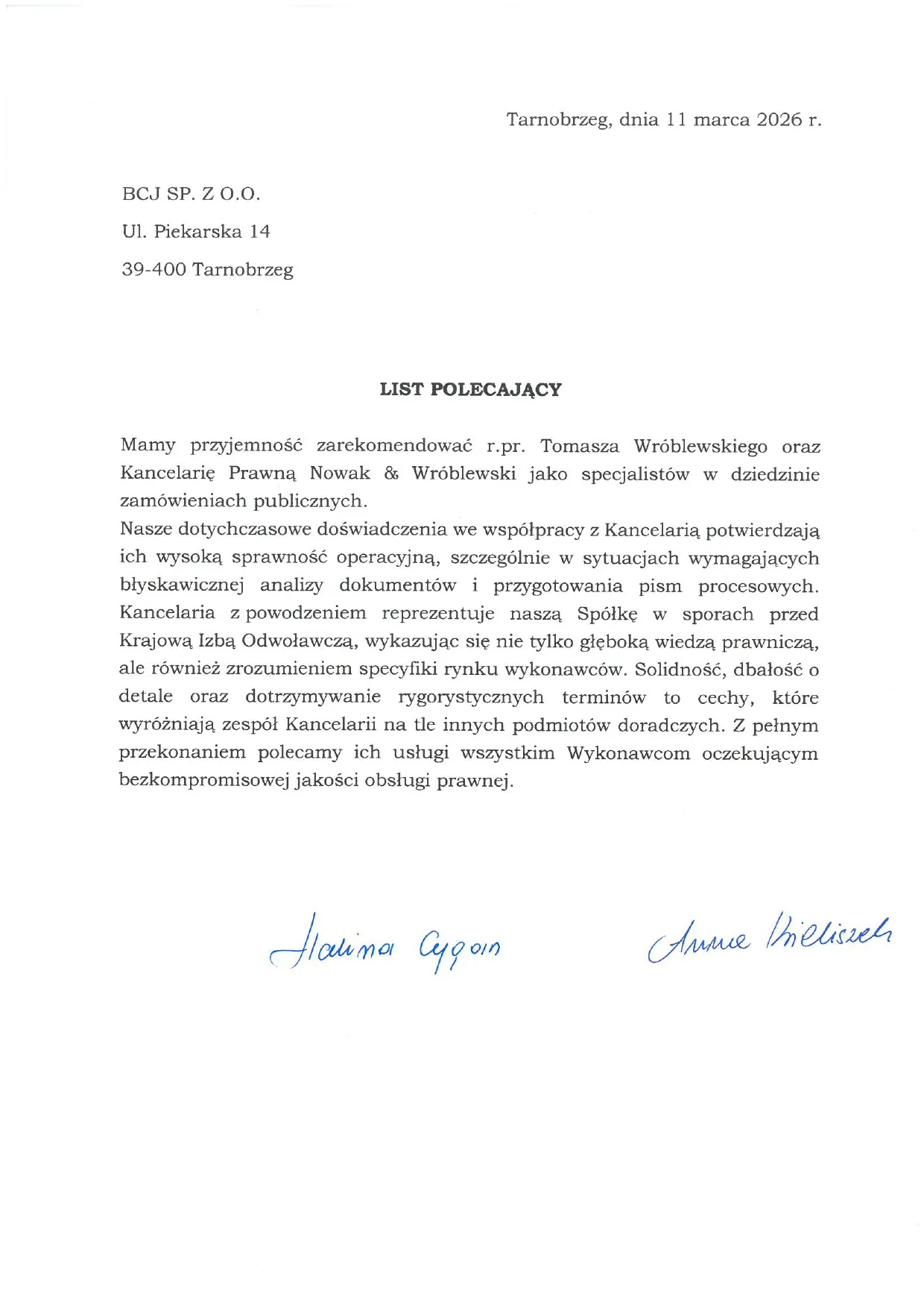 Nasze dotychczasowe doświadczenia we współpracy z Kancelarią potwierdzają ich wysoką sprawność operacyjną, szczególnie w sytuacjach wymagających błyskawicznej analizy dokumentów i przygotowania pism procesowych. Kancelaria z powodzeniem reprezentuje naszą Spółkę w sporach przed Krajową Izbą Odwoławczą, wykazując się nie tylko głęboką wiedzą prawniczą, ale również zrozumieniem specyfiki rynku wykonawców. Solidność, dbałość o detale oraz dotrzymywanie rygorystycznych terminów to cechy, które wyróżniają zespół Kancelarii na tle innych podmiotów doradczych. Z pełnym przekonaniem polecamy ich usługi wszystkim Wykonawcom oczekującym bezkompromisowej jakości obsługi prawnej.